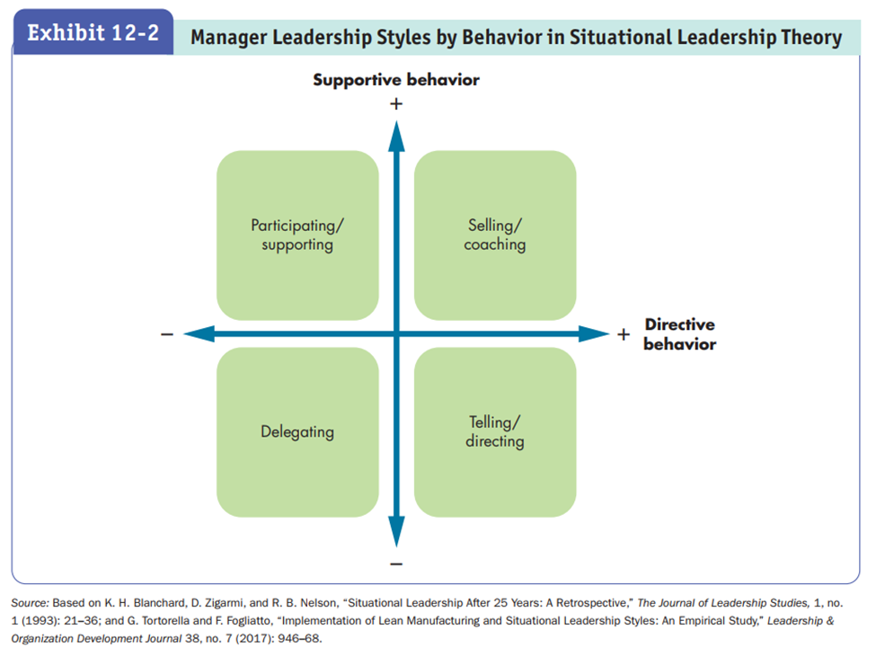 موضوع مهم دیگه‌ای رو هم باید مدنظر داشت: سبک بهینه‌ی ارتباط مدیر با همه‌ی افرادش لزوما نباید بر مبنای اعتماد یا تفویض اختیار باشه. این نکته‌ایه که بعضی نظریه‌های لیدرشیپ هم به اون اشاره می‌کنن. به‌طور خاص نظریه‌های اقتضایی (Contingency Theories). یکی‌ش مدل آقای فرد فیدلر (Fred Fiedler) هست و دیگری هم تئوری رهبری وضعیتی (Situational Leadership Theory) هرسی و بلانچارده (Hersey & Blanchard).