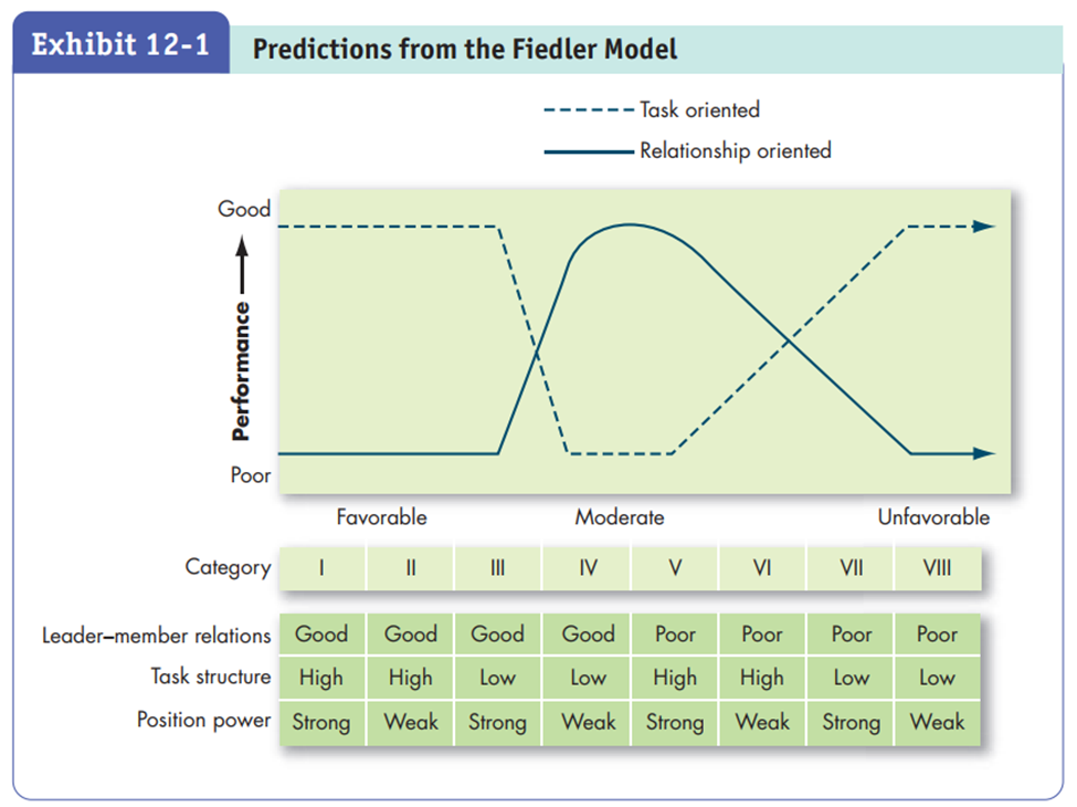 ۱- ارتباط رهبر و عضو (Leader-Member Relations) و میزان صمیمیت و هم‌فکری و هم‌دلی که با هم دارند، اینکه چقدر به هم دیگه اعتماد دارند و چقدر به هم احترام میذارن.